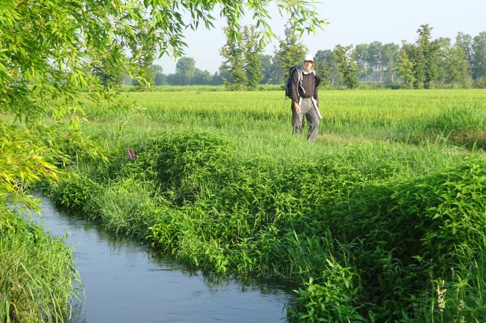 The Via Francigena people haven’t bothered to sign the route. There was just a way in sign at the start of the paddies. We missed our turning a couple of times and had to back track which is always frustrating but especially so in a rice paddy.