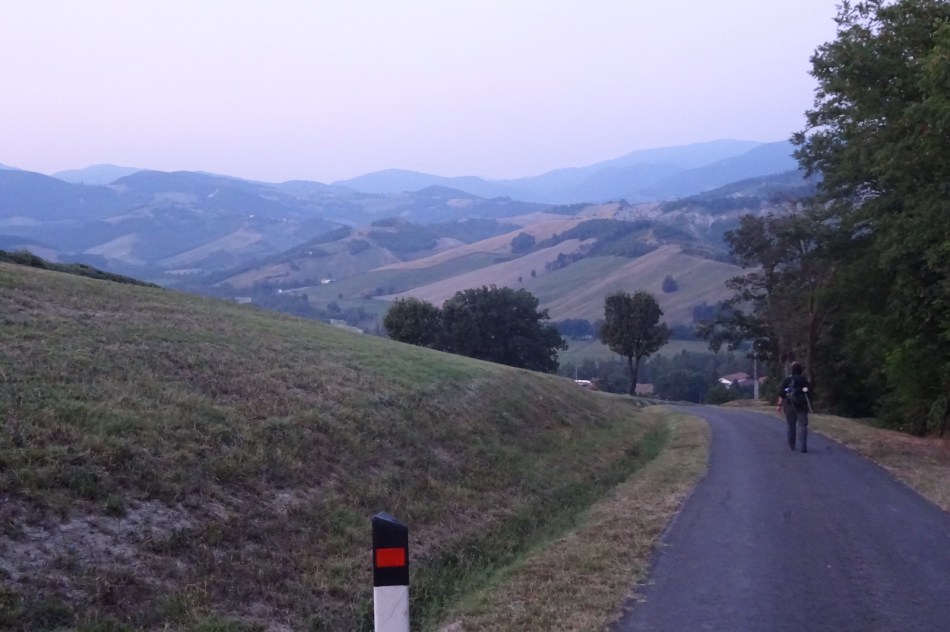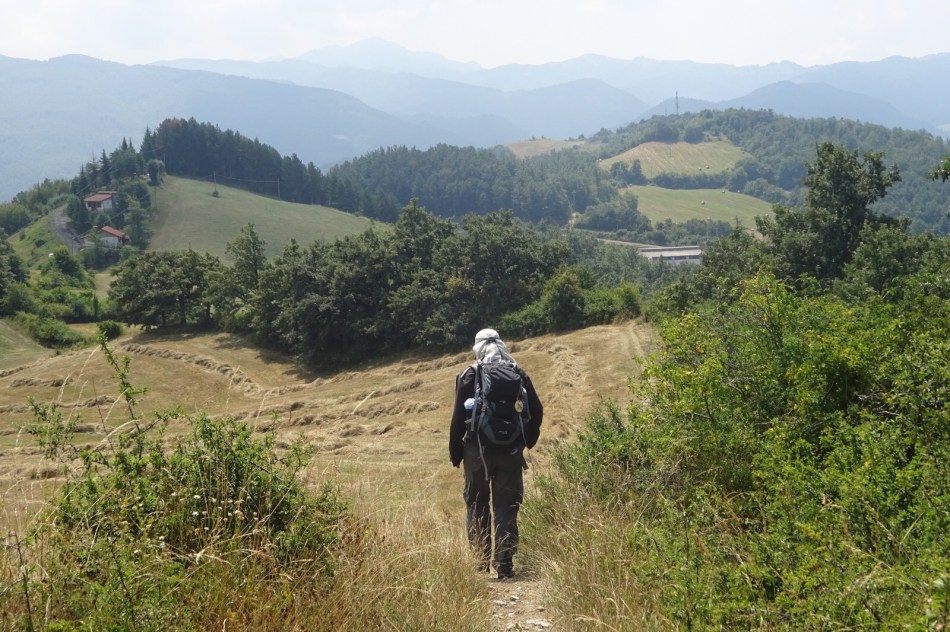 A lovely walk today. We are properly in the Apennines. You know that when you ascend 1870m and descend 780m in one day. Phew! Two stages and 41km have brought us from Fornovo di Taro to the top of the Cisa Pass. That’s because we couldn’t find any accommodation in between. Paul phoned every hostel on my list and they all said “completo”. It’s possible this is a stock response to any incoming telephone call in English. Fortunately we secured a couple of beds in the hostel at the Pass to ensure progress continues.