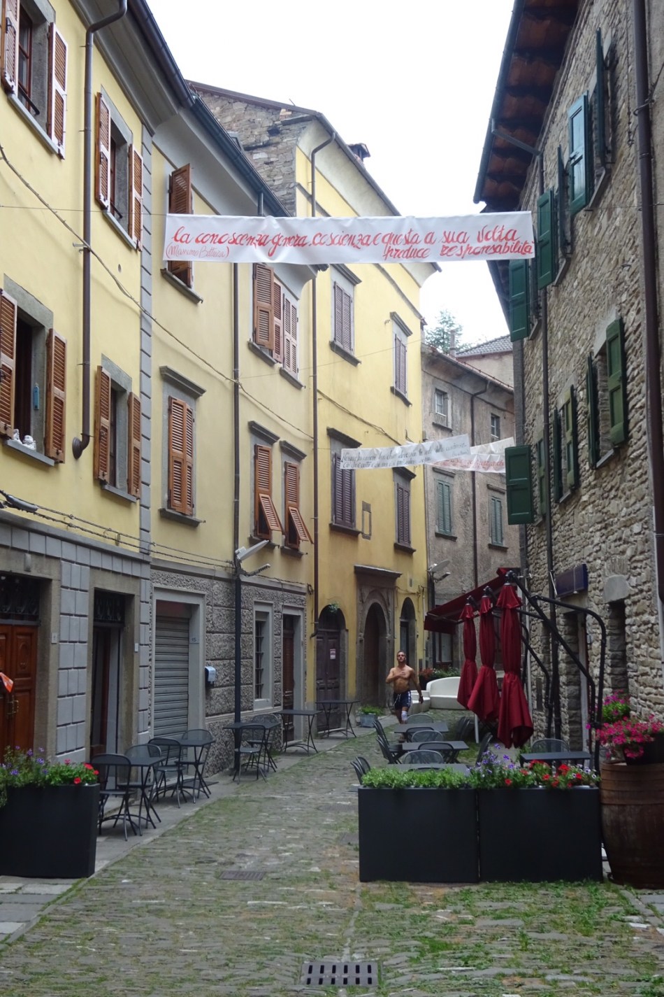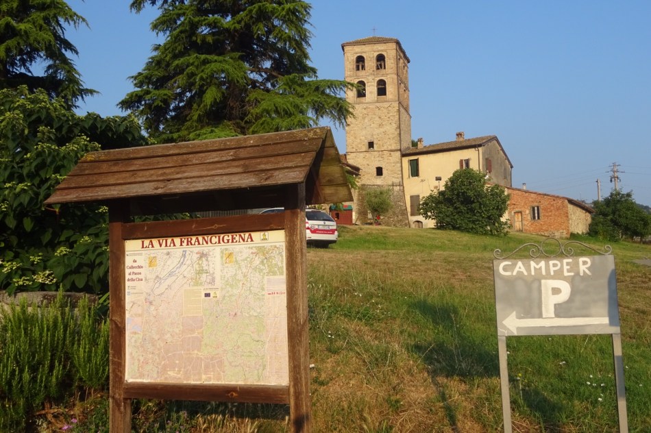 During our Frizzante stop in Berceto I heard some British voices and was amazed to discover two British ladies (A&M) who had recently met each other. A is walking from the GSB Pass while M has just started. We met again this evening at the hostel on the Cisa Pass. As is often the case in mountain hostels, There is quite a gathering of pilgrims, walkers, cyclists etc. We had a pleasant evening. In fact it’s a bit like the Camino.