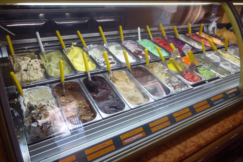 The gelato shop is a special Italian experience. What a pleasure to enter the cool premises from the summer heat and to see all the flavours on display. Choose your cone size and the flavours and watch the assistant scoop out the gelato and cram as much as possible into the cone or dish. Then find a little table and let the indulgence begin. After a few mouth cooling spoons, step back and admire the creation. Observe the customers coming into the shop. Children with unbridled joy, adults with controlled enthusiasm laced with guilt and old people with a smile and nostalgia for summers past. I’m still in the first category.