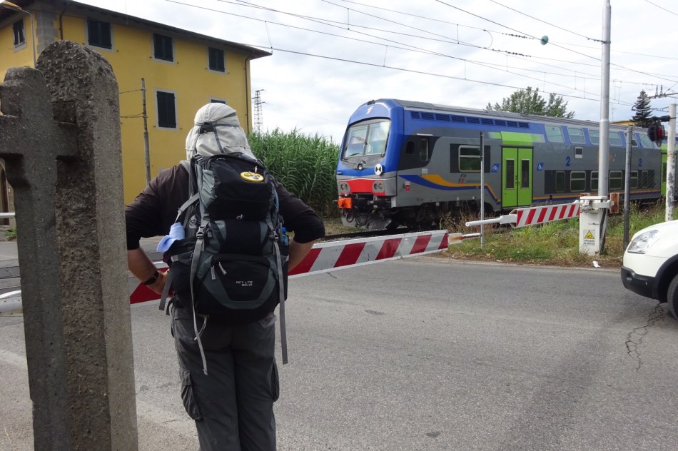 We are no longer in the wilds of the Po Valley so we have to wait at railway crossings