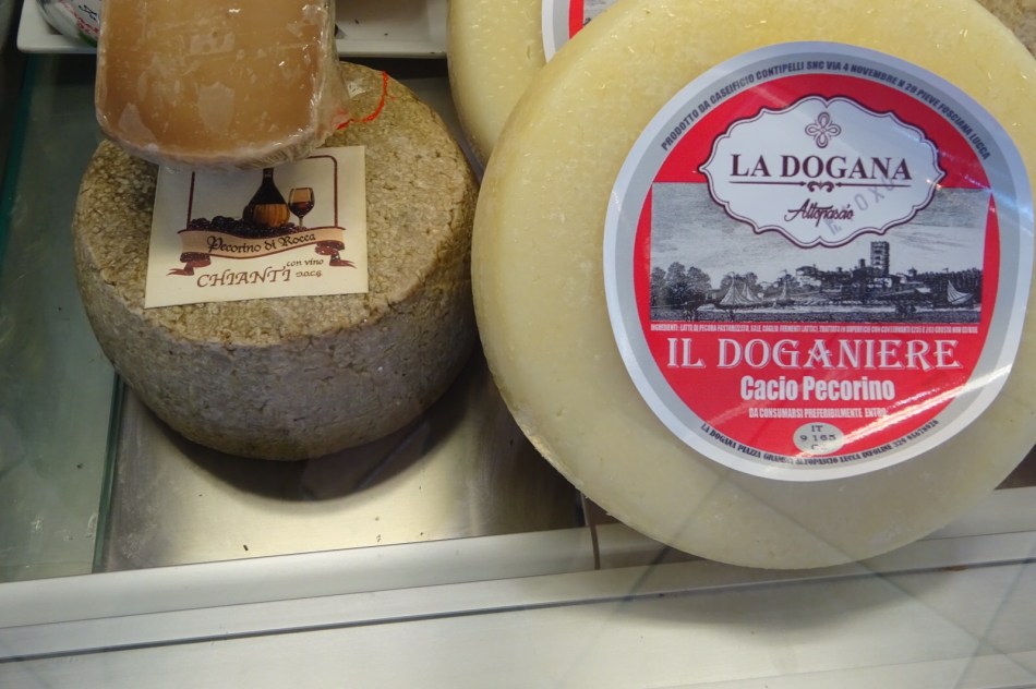 Unfortunately I didn’t photograph the huge Lucca cheese which is central to the cheese throwing competition. But for all of you who love cheese, especially Cheeseywoman, here are some Italian cheeses.