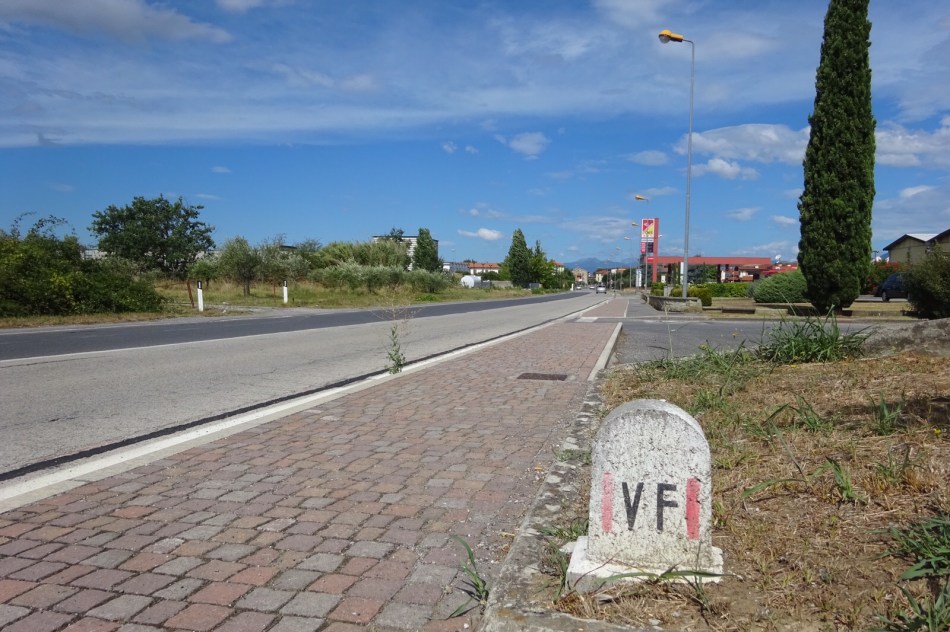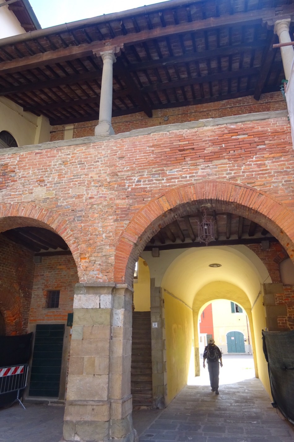Today’s walk is very easy for the modern pilgrim. We soon reached Altopascio with its famous 11th century hostel and bell tower. In those days the bell was rung at dusk to guide pilgrims lost in the surrounding marsh fogs and woods to the safety of the hostel. Nowadays with GPS it’s a CAT1 approach whatever the weather.