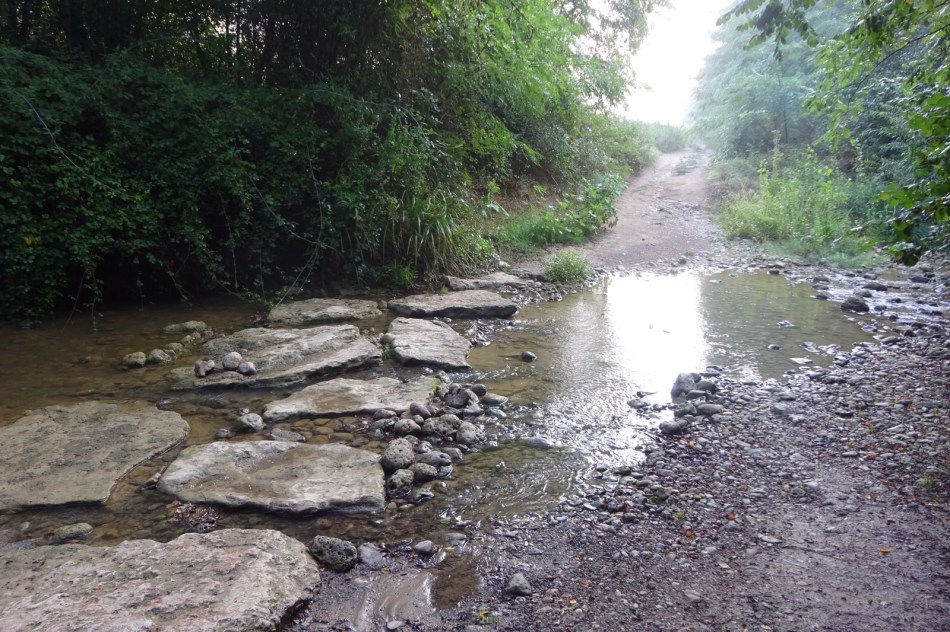 “One of the most beautiful routes along the Via Francigena” says the AEVF app, referring to today’s 31km stage from San Gimignano to Monteriggioni. Beauty is subjective. The walk was through mixed oak woodlands and was just like the North Downs Way. Last night’s heavy rain turned the path into a slippery muddy mess and it was under water in places. It reminded me of our first few days when the NDW was flooded.