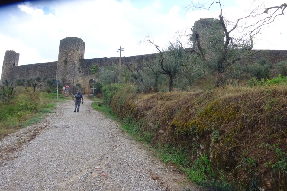 approaching the walled town of Monteriggioni. Tonight’s hostel is right in the middle