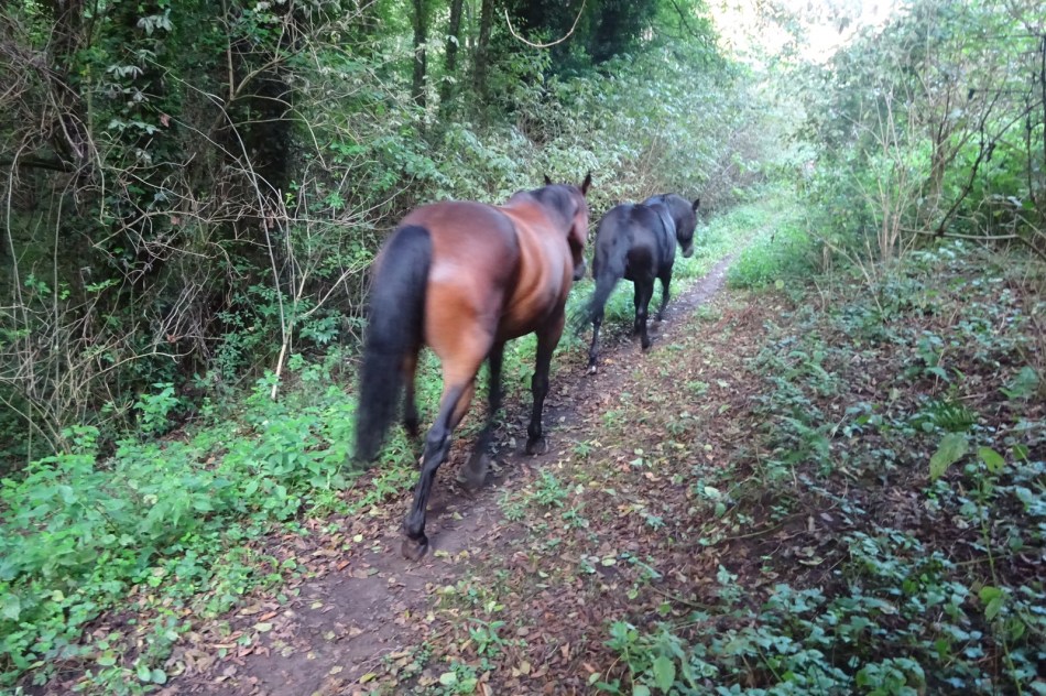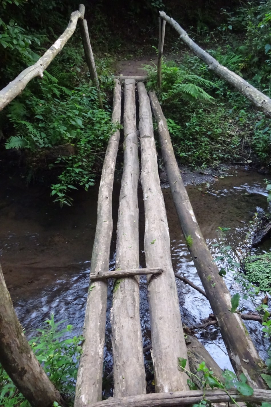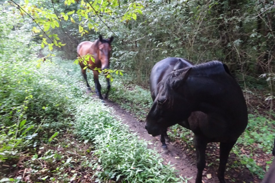 The dark forest trail would have been better tackled in the sunshine than in the dawn. Apart from being overgrown in places there were fallen trees to contend with and raging torrents to negotiate on wooden planks. As we progressed we suddenly saw three horses coming towards us along a narrow path. They looked well groomed and used to people so we stood to one side as they passed. They seemed to know the way where ever they were going.