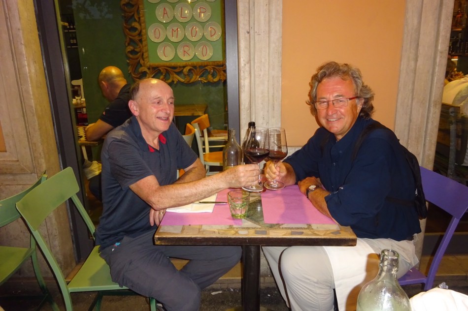 1. Thank you, Tim, for allowing us to walk to Rome from the comfort of our padded chairs whilst you sweated, struggled and suffered! But only you (and Paul) deserve the rosy glow of your achievement. Amazing!