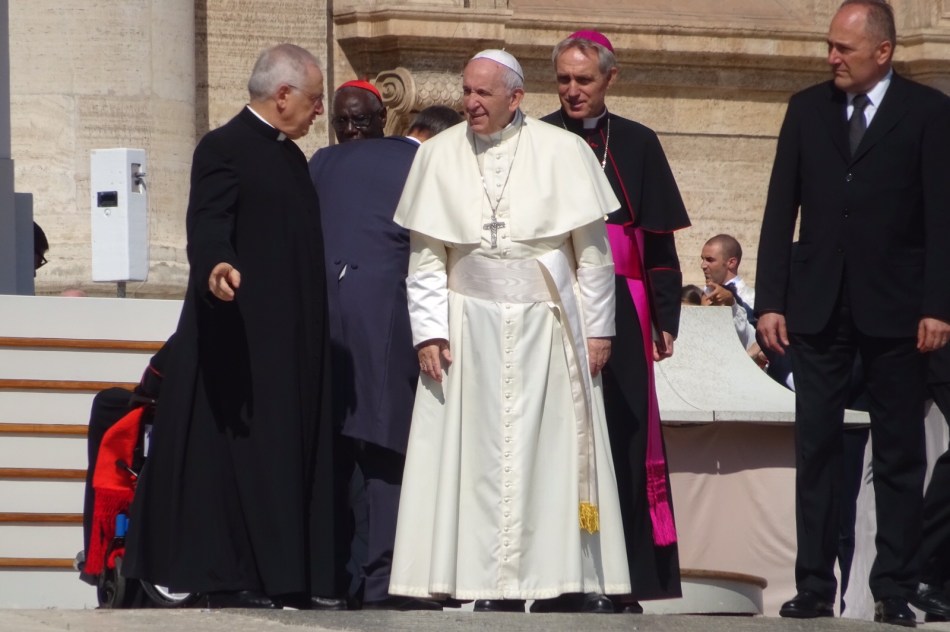 There is no finer way to end a pilgrimage than to receive a Papal blessing. I hurried along to St Peter’s Square yesterday at the ungodly hour of 7.30am to join the masses for the Pope’s weekly audience. The early start secured me a seat in row 7 which gave me a good view and a decent opportunity for my little Sony camera to snap the action.