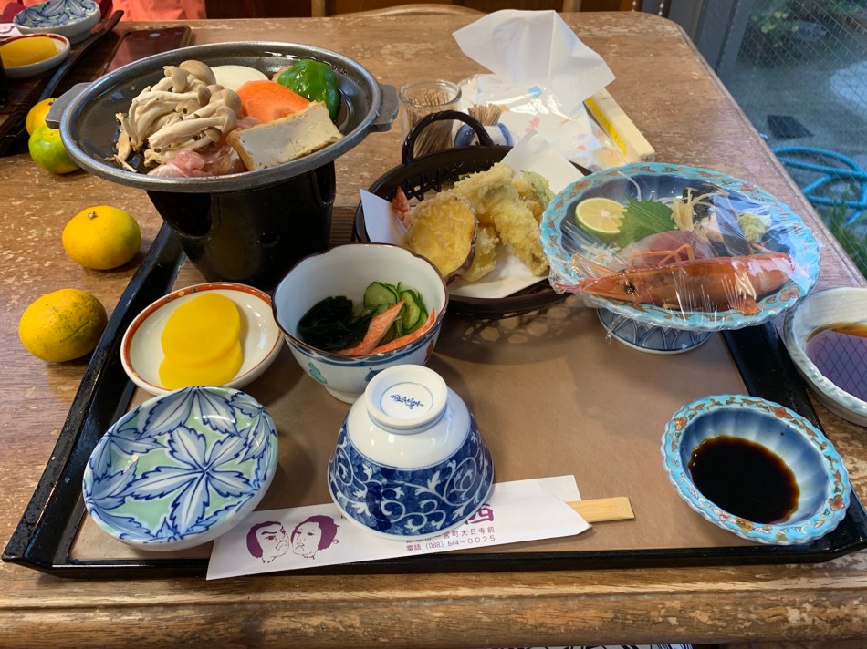 I took a shower, dropped my clothes into a washing machine and then relaxed with 650ml of cold Asahi beer. Sandrine & Erika arrived and there were a dozen others for dinner. We each had a pot of stock and vegetables on a burner and a dish of raw fish which we threw in as needed. And there was a full supporting cast of miso, pickles, rice and assorted unidentifiable things. After that, he made my reservations for the next couple of days. Another pilgrim super hero.