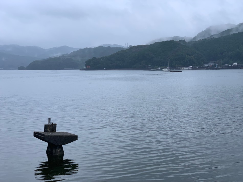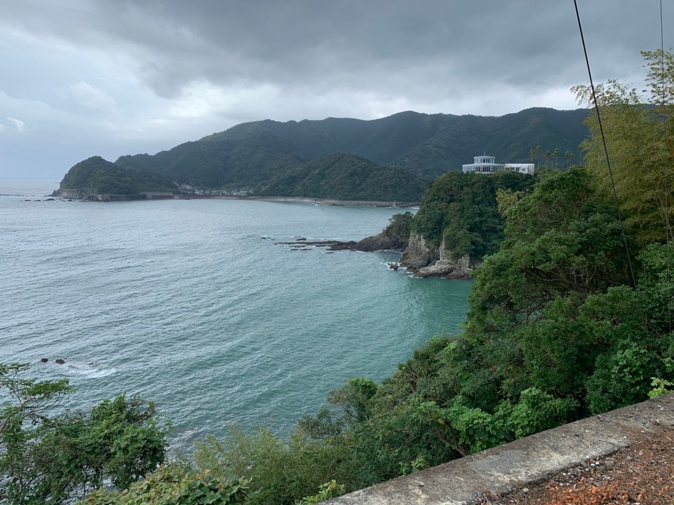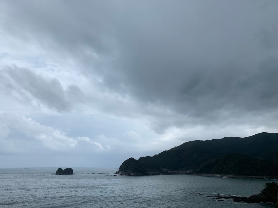 We continued on our way. The sports cars and racing motorcycles had gone but the thunder and lightning kept us focused. One more breathtaking view briefly opened up between the trees but the warning in the map book about no food or drink was wrong as a vending machine stood waiting for me. I put a 1000 yen note in and it jumped to attention, lights flashing and ready to serve. I pressed the button for a bottle of Aquarius and the bottle dropped down and my change was dispensed, followed by a cheerful arigatou gozaimasu. It won’t be long before these machines will have face recognition and then we’ll have a more targeted conversation.