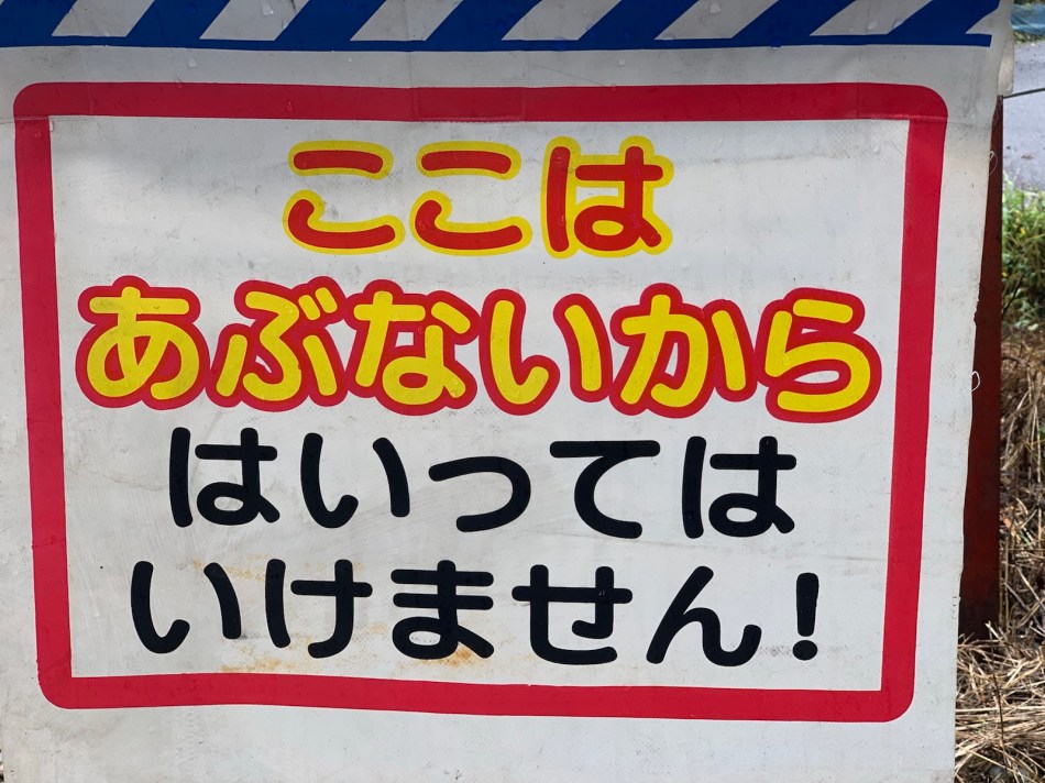 Belatedly … the sign says (semi-literally): Here dangerousfrom do not enter.