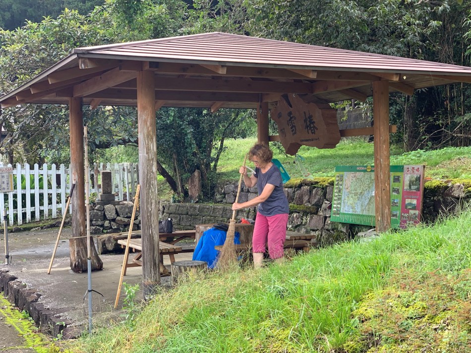 Today’s walk was a lightweight 18Km to Temple 37 which is halfway down the south west peninsula. We ordered breakfast for 7am, half an hour later than usual, hoping for a little more sleep. However sleeping was difficult as the rain lashed against the windows all night. This typhoon has a sting in its tail as it passes up the Sea of Japan.