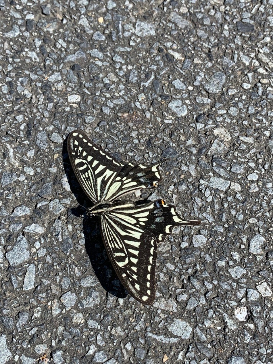 Today I walked another 31 Km down the coast of the south west peninsula and tomorrow I’ll reach the very tip and Temple 38. I mostly followed the road but it was peaceful enough for Shikoku nature to intrude. Butterflies are everywhere. Giant juicy colourful butterflies. I wish I still had my Sony camera but I buried it with full pilgrim honours after it died in the first typhoon. Now I’m stuck with my iPhone and its old fashioned 4×3 sensor. Come on Apple, it’s a wide screen world.