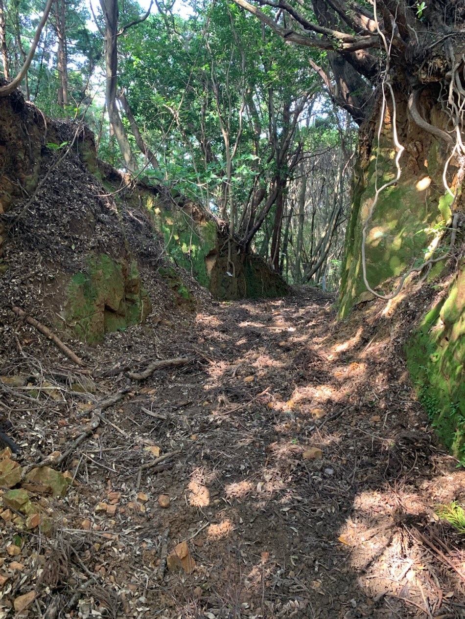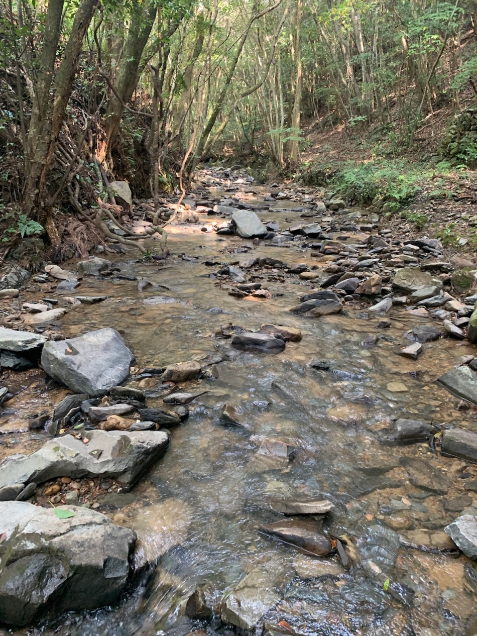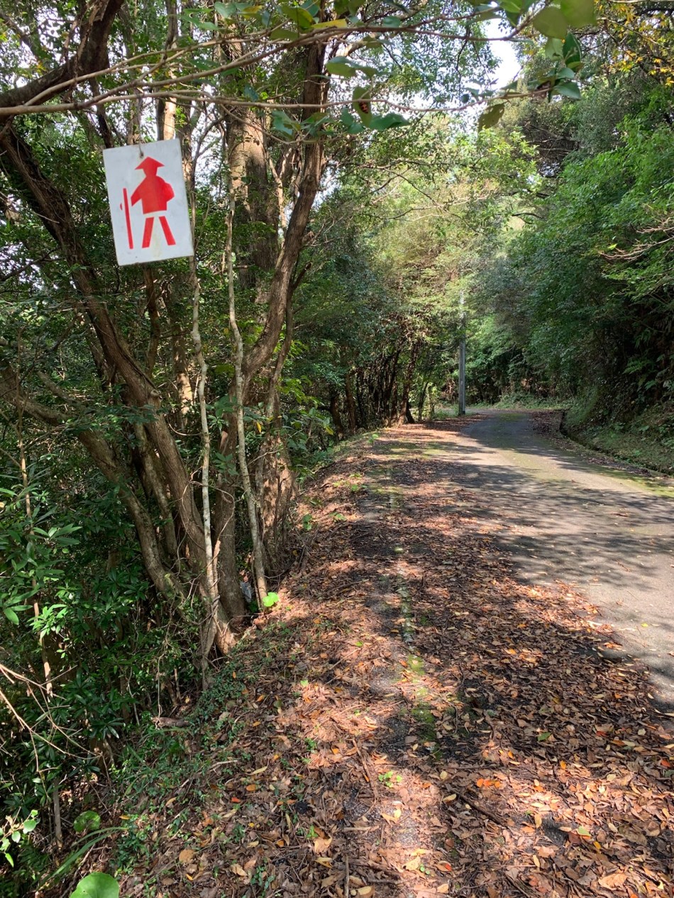 On I went and soon came to the 10Km walk in the woods. I could have continued along the road but the sign was clear enough: Pilgrim route this way. I should have stuck to the road because I was soon deep in the forest, hacking my way through the undergrowth. To be honest, the trail was always clear and incredibly well signed but since the last pilgrim all the spiders had spun their webs across the trail and were hanging in the air. I felt like a majorette with my staff twirling through the air clearing the webs and then pounding the ground to clear any ground living undesirables from my path. I was glad to rejoin the road at the Himenoi Bus Stop.