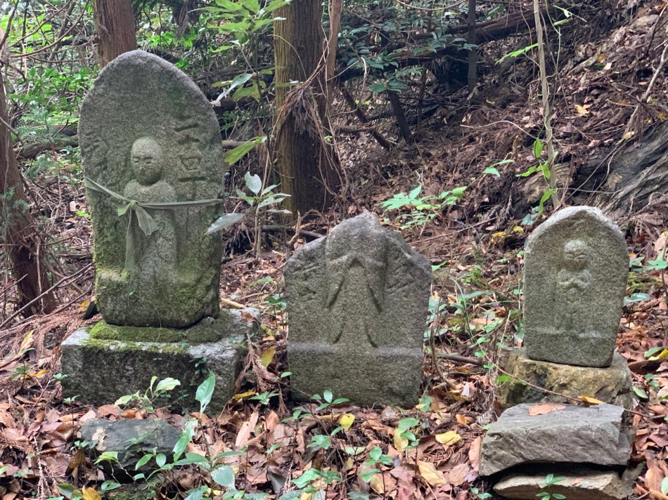As the day was still young I decided to follow a different trail down and visit Temples 61 and 62. The path seemed to know where it was going and confidently cut a swathe through the deep undergrowth while lots of prayer signs hung from the trees like Christmas decorations. I stopped at a pilgrim hut deep in the forest to eat my packed lunch: ham and cucumber sandwiches and a rice triangle with tuna inside, washed down with a bottle of Pocari Sweat.