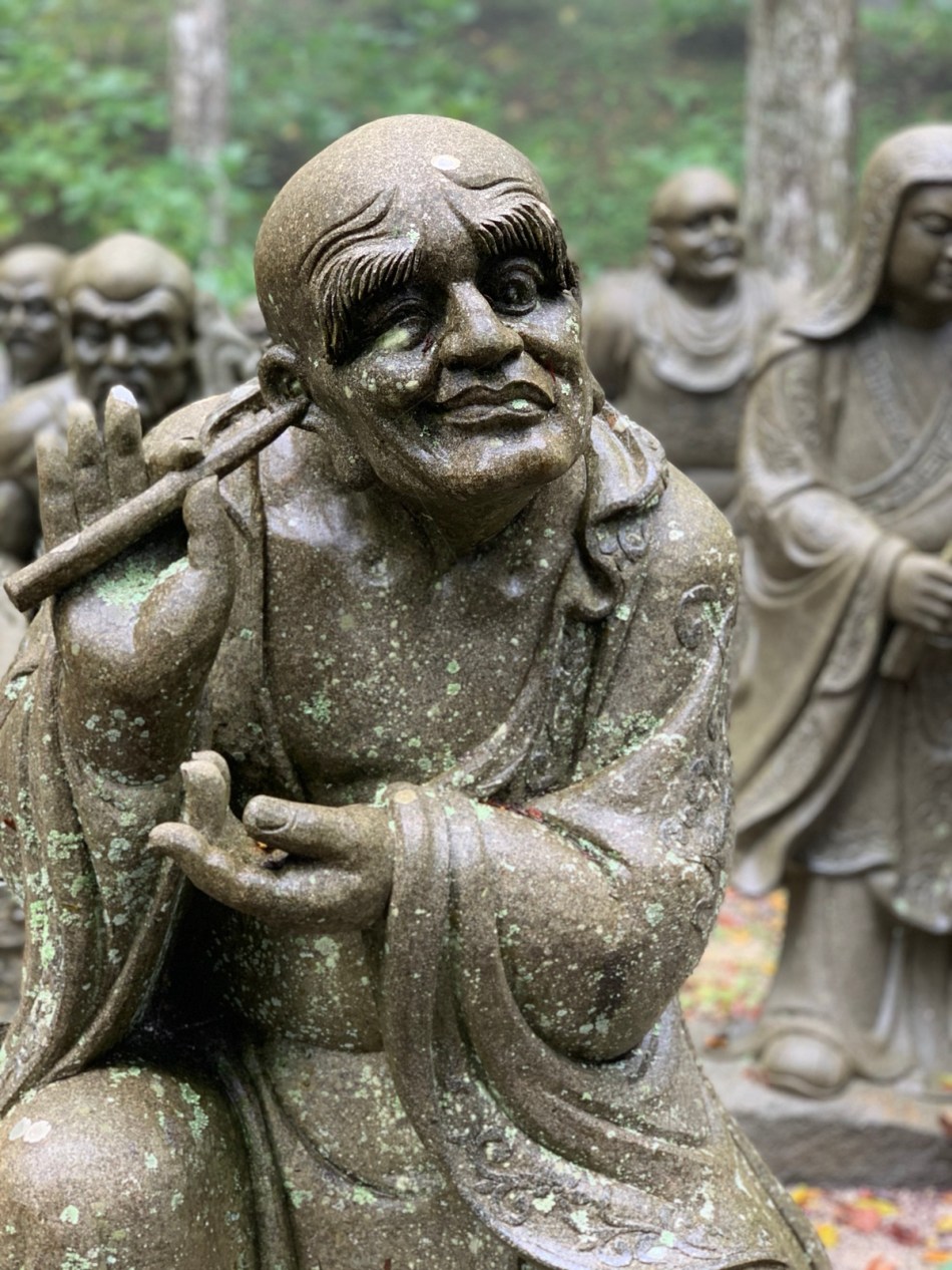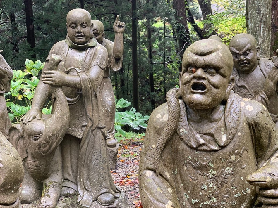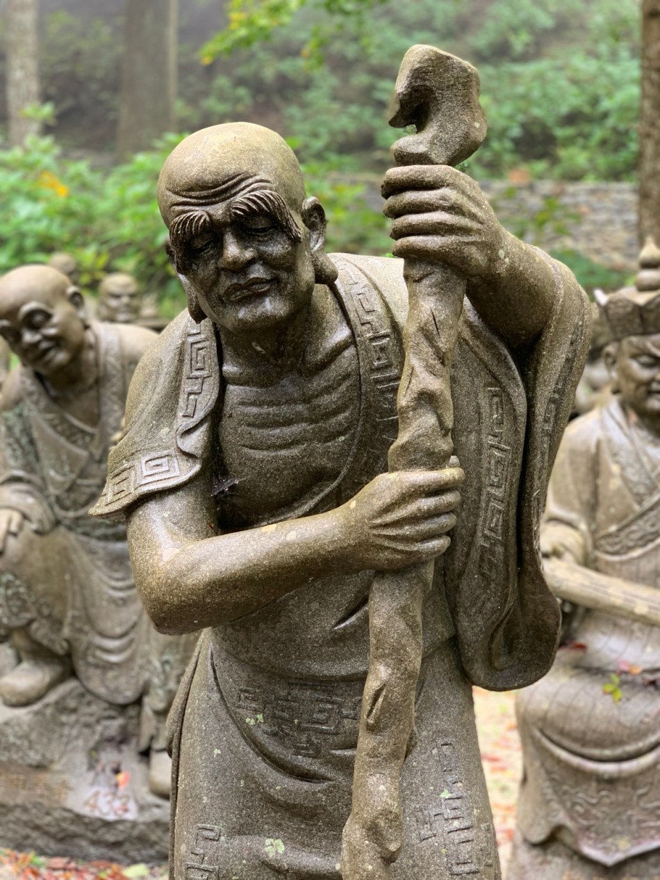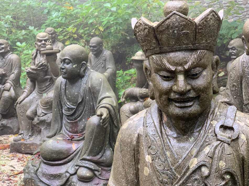 The temple had another surprise before we set off. Dozens of life size carved statues lined the path into the woods. Amazing characters that demanded a selfie or two. It was unexpected and surreal. A huge gathering by a temple on top of a mountain.