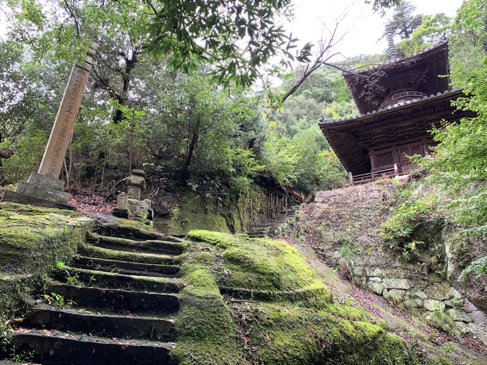 Temple 70 was nicer than expected and delayed us awhile. Temple 71 took me completely by surprise. Blanca had warned me several times that it was 221m high which I dismissed as trivial. Perhaps if I had imagined endless flights of steps rising to 221m I might have added more time. The steps went on forever but this was no optical illusion. And not one of those hundreds of steps would have passed a H&S inspection. Eventually we reached the entrance high among the hills and deep in the forest. That’s when the real climbing started, to reach the main temple and the Daishi temple.