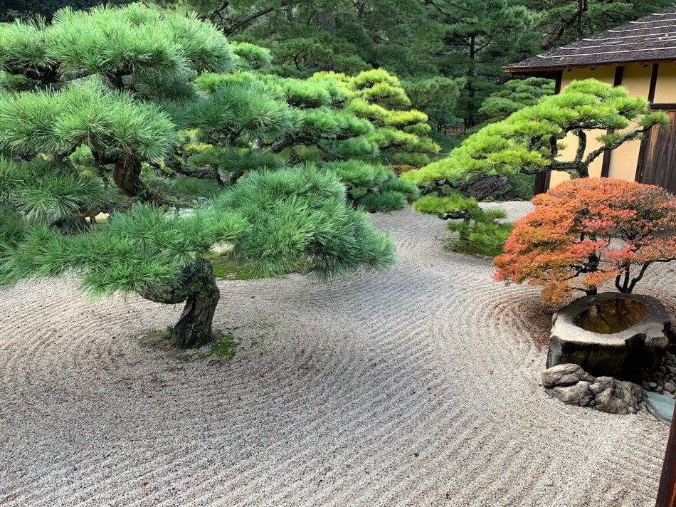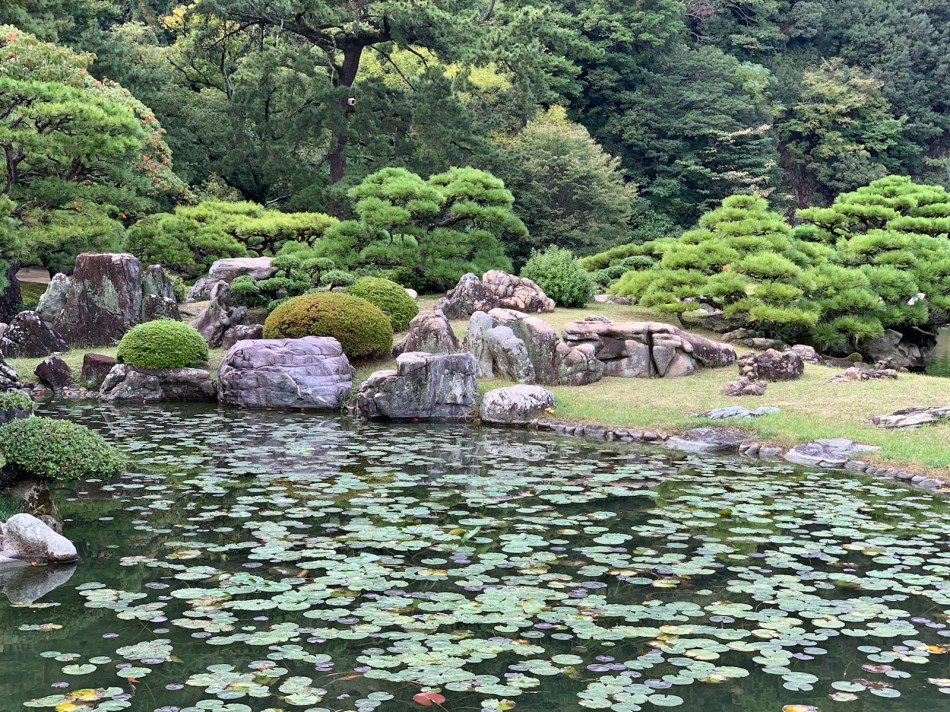 Temple 83 came and went with the rain. I didn’t even take a photo. It has been consumed by the unpleasant urban sprawl of Takamatsu. We continued through the city until we arrived at Ritsurin Garden.