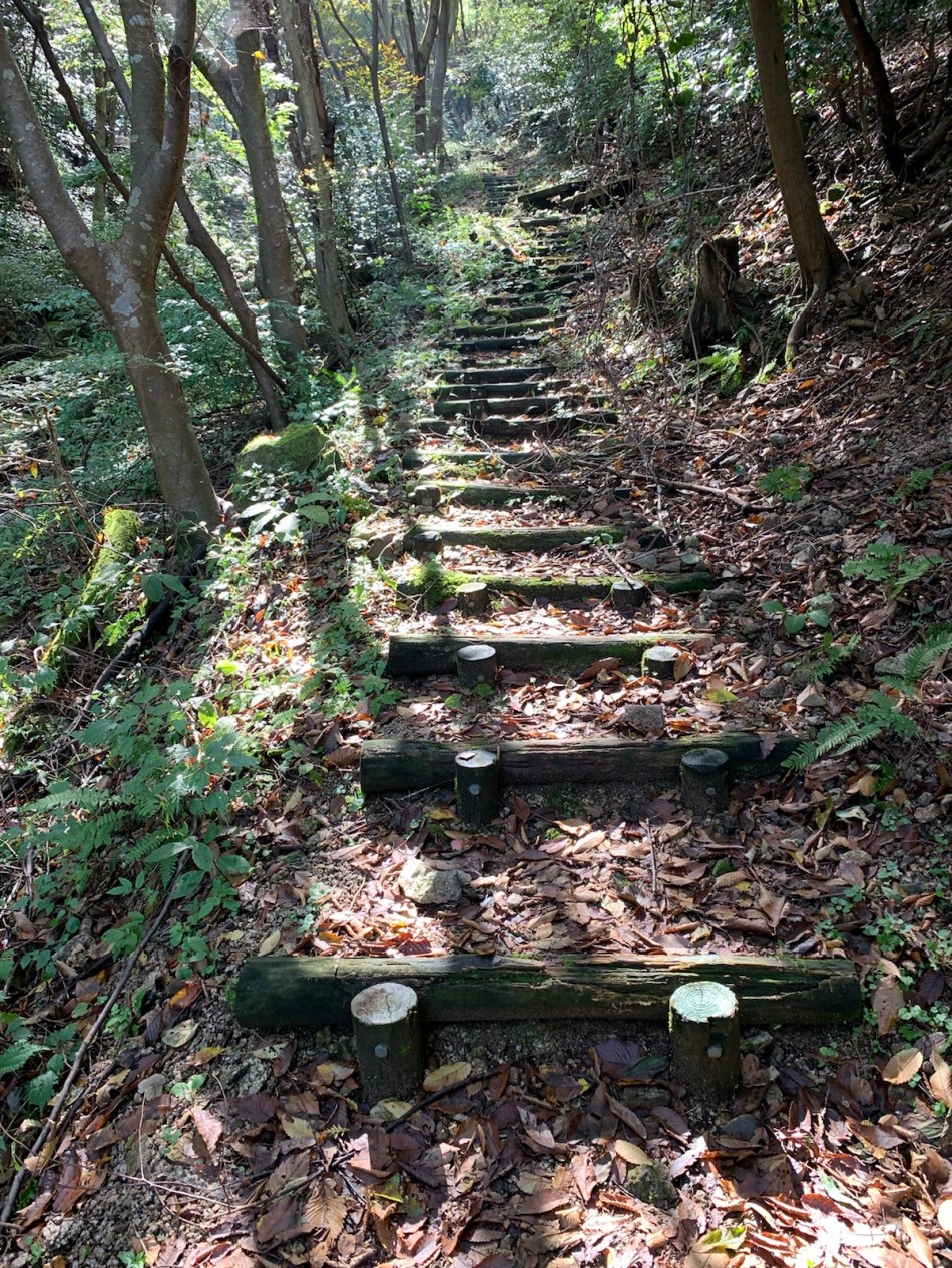 It was a real mountain climb today. The trail led us into rocks which had to be climbed with hands as well as feet. Had this been Temple 1 no one would go any further. The weather was excellent. Sunny and around 20 degrees. Eventually we reached the summit at 800m and then descended to the 88th and final temple on the pilgrimage.