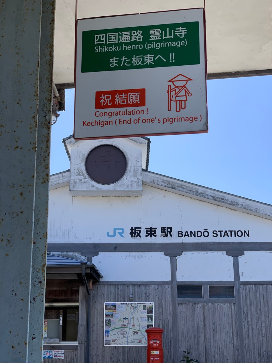 At Bando station near Temple 1. Depending upon which way you’re going this sign says good luck or congratulations