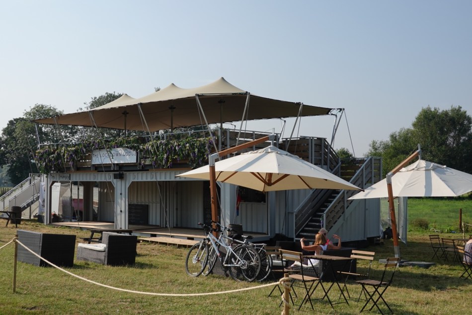 I followed the path through a farm and on to Hambleden Lock where I found the Lockdown Lodge. I’d seen a little notice about it on one of the gates and stopped for a coffee. The Lodge is actually 8 former shipping containers on two levels on some grass by the lock. Upstairs is a restaurant which is booked up until the end of August, when the whole thing closes, and downstairs is a bar and cafe.