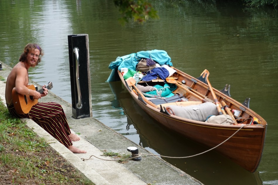 βI wouldnβt trust them with a Tesco trolley!β ππ hilarious, I canβt stop laughing at that phrase. I love your writing Tim, I feel and imagine all you are portraying in your words. Well done on another day. The guy with the guitar looks laid back. I like the idea of sleeping in one of the little rowing boats under the canvas….I wonder how stable they are for a fidgety sleeper π€