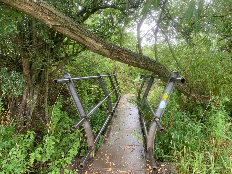 Anyway, the rain was now falling very hard. She pointed to a fallen tree and I was soon clambering over the tree, over the fence, through the anti-tank nettles and back on the path.