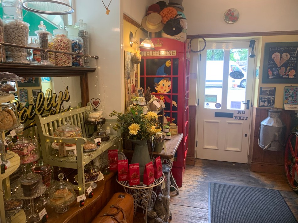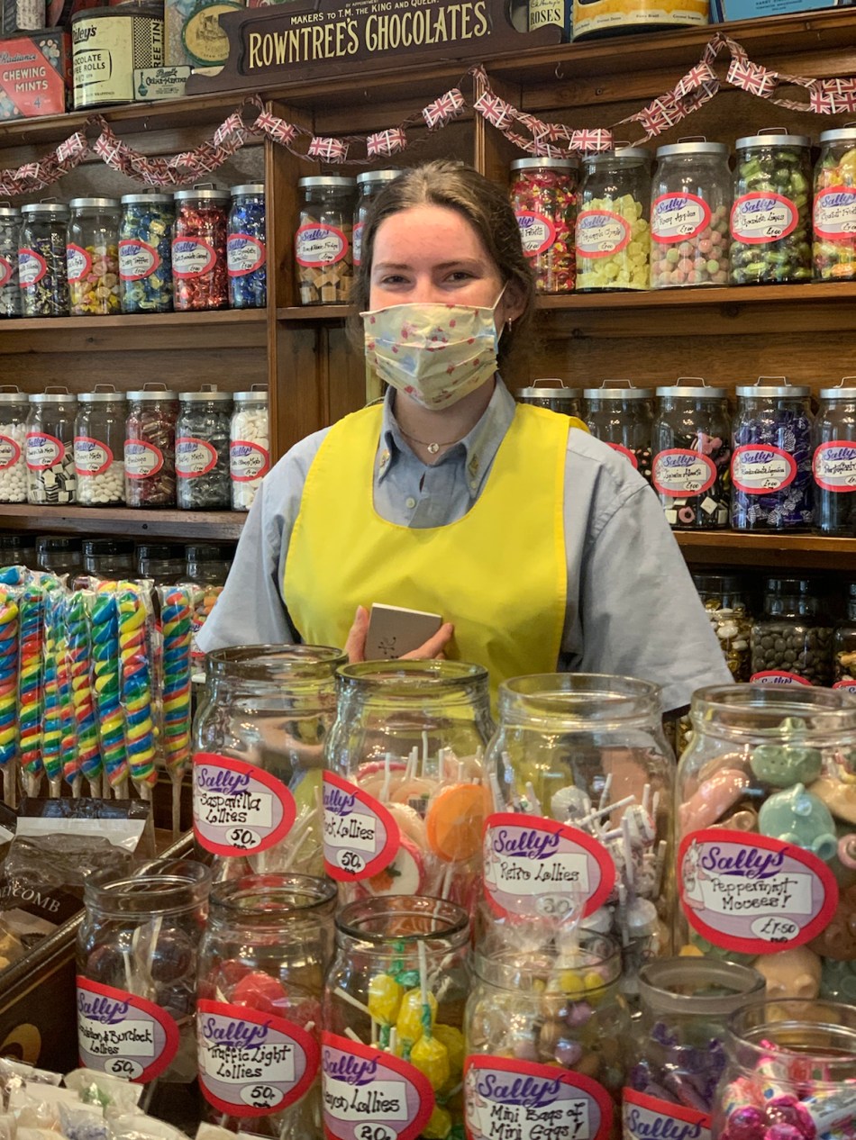 The walk to Malham was only 18Km and flat all the way. There was an old fashioned cafe and sweet shop half way. I had a cappuccino and a slice of rocky road and the assistant agreed to pose with her decorative face mask.