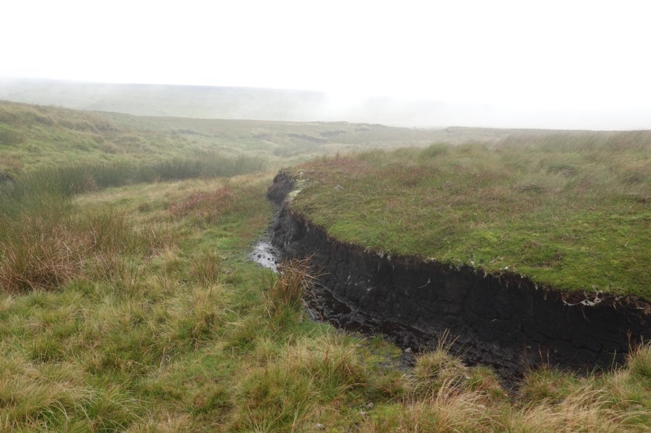 I crossed Black Moor which rises from 300m to 568m at Tarn Rigg. There was no warning of the horrors awaiting. It isn’t really cold, I’m only wearing my thin trekking shirt and a thin fleece but I have my waterproof layer which kills the wind. You’d need a lot more in winter. Then it was Stonesdale Moor and I had to tread carefully around Mould Gill Coal Level (dis) and various Pits (dis), Shaft (dis), Quarry (dis) and Colliery (dis). Visibility fell to almost nothing on the high ground but I wasn’t worried because I have CAT3 nav.