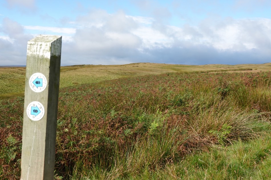 The day started with sunshine and so the moors looked stunning. Despite being on the softies trail, I had an accident. A branch was hidden in a patch of thistles and my boot caught it. The branch refused to yield, I couldn’t free my boot and down I went – into the thistles. Fortunately they were the non stinging type.