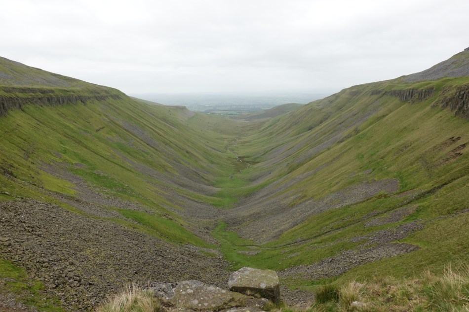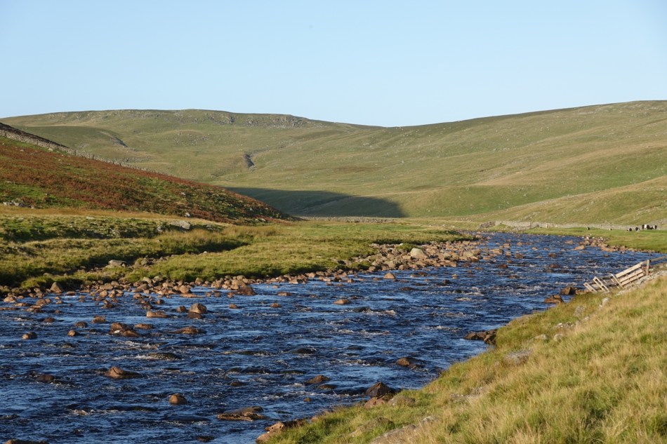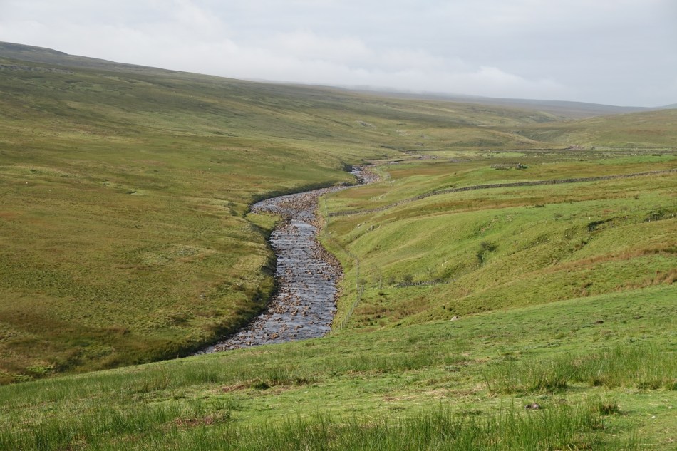 The taxi dropped me off at the grid reference for the start of today’s walk, on the banks of the River Tees. The sky was blue, the sun was shining and there was no rain forecast. Today was a pleasure. The walk was more or less a straight line in a west south west direction with a well defined path and nice scenery. The highlight was the impressive High Cup Nick, a massive glacial valley, the sort of U shaped valley you’d draw at school in geography. It’s one of those natural wonders which cannot be adequately photographed. You just have to sit there with a KitKat looking at it.