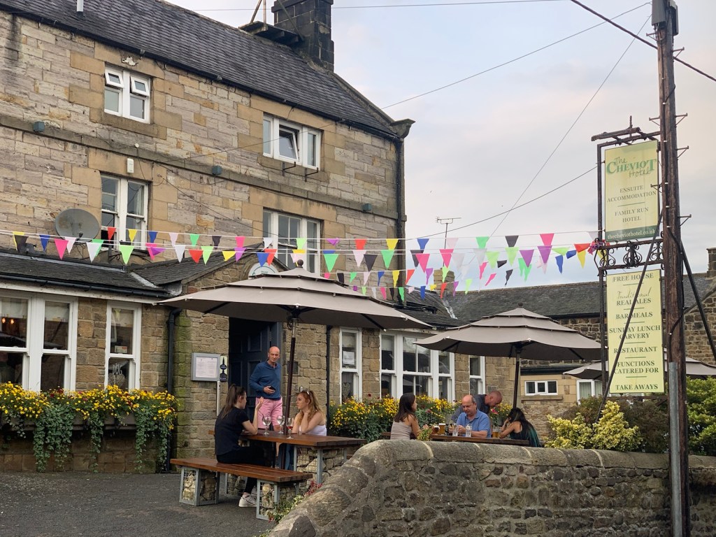 Bellingham is a nice place, practically the last village before Scotland. There’s an old church from the 12th century dedicated to St Cuthbert (who is buried on the Holy Island of Lindisfarne) and a good range of shops including a bookshop, a bakery and a little CoOp. Also several pubs including The Cheviot where I’m currently having dinner.