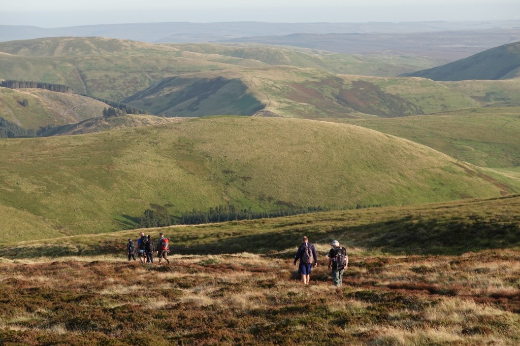 What weather!! We’ve been blessed with another fine day today. When I was fighting my way through the storms of August I feared for the conditions I might face on the Cheviots. Rain, wind, fog etc. I never dreamed it would be sunshine, big blue skies and warmth. The moors today looked so beautiful. Every shade of green and the last of the heather flowers. During the day we passed backwards and forwards between England and Scotland.