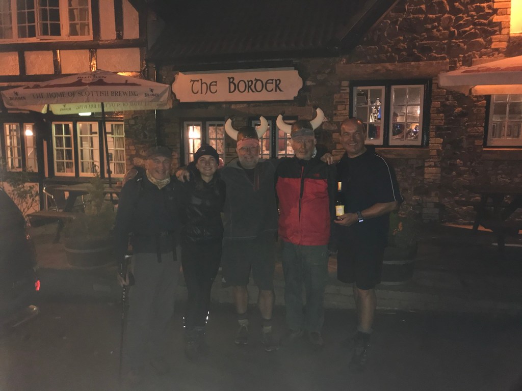 We had a warm welcoming party to meet us under the moonlight. Troels and Bent completed their epic journey raising thousands of pounds for their charity. And Mandy, Martin and Sue who have been walking the St Cuthbert’s Way were there ready to walk with me for the remaining three days to the Holy Island of Lindisfarne. So it was quite a party.