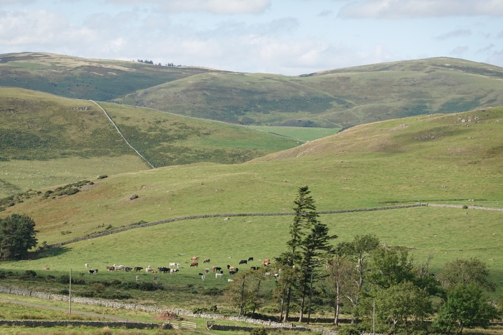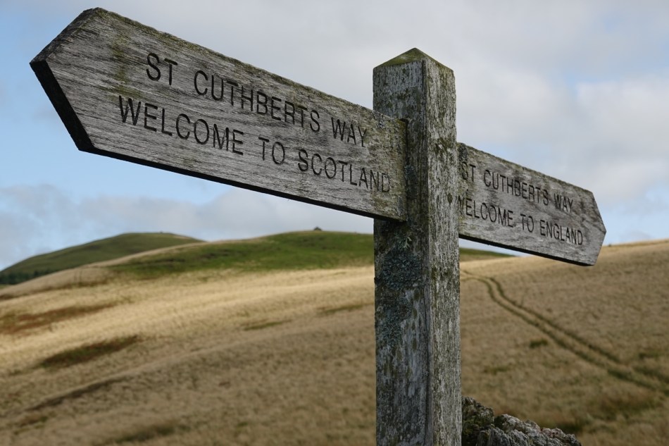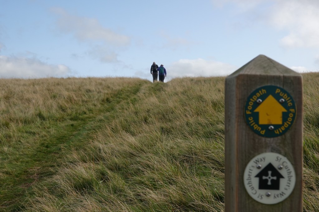I didn’t feel too good this morning. I said goodbye to Richard and Georgie at breakfast and then set off on the St Cuthbert’s Way with Mandy, Martin & Sue. They will guide me towards the Holy Island of Lindisfarne on Monday. It was another lovely day of sunshine and colours and we had a gentle stroll towards the North Sea which we can already see in the distance. We started the day in Scotland but soon crossed back to England to head east to the coast. It was the last of the Cheviots. They’re not mountains but they are a formidable range of hills stretching across the country. I’ve seen them at their best and it was an experience I’ll never forget.