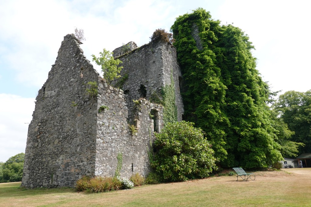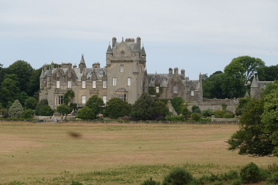 The gardens are reasonably impressive, particularly if you like to embrace a giant sequoia, shoot off some Kodachrome in the walled garden or wander past the stately pile, facing one of the lochs. The original 16th century castle was destroyed by fire and is now a “romantic ruin”.