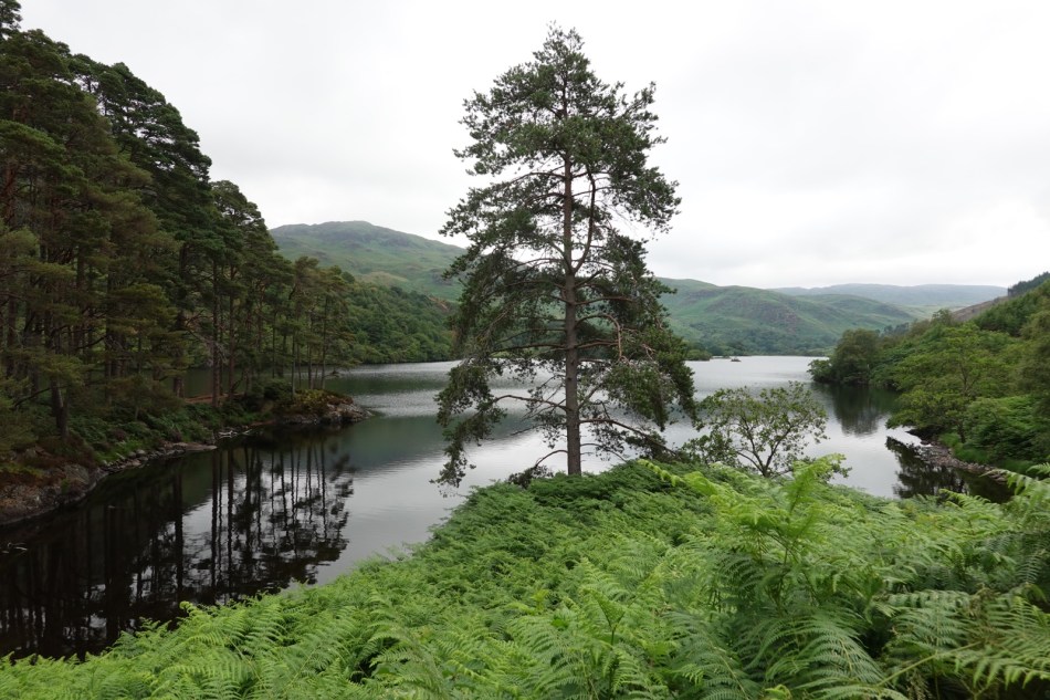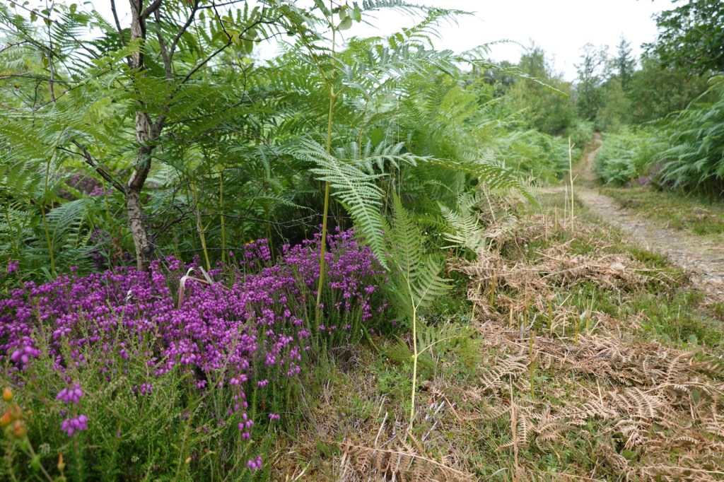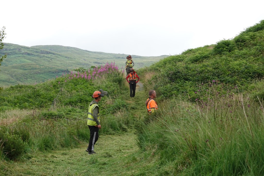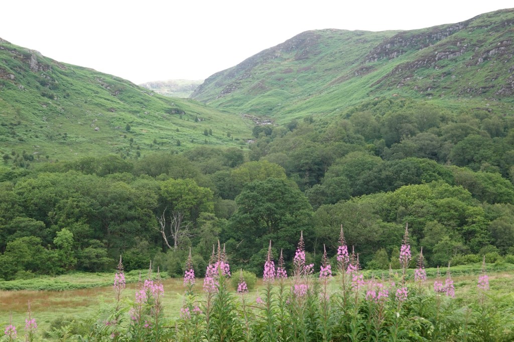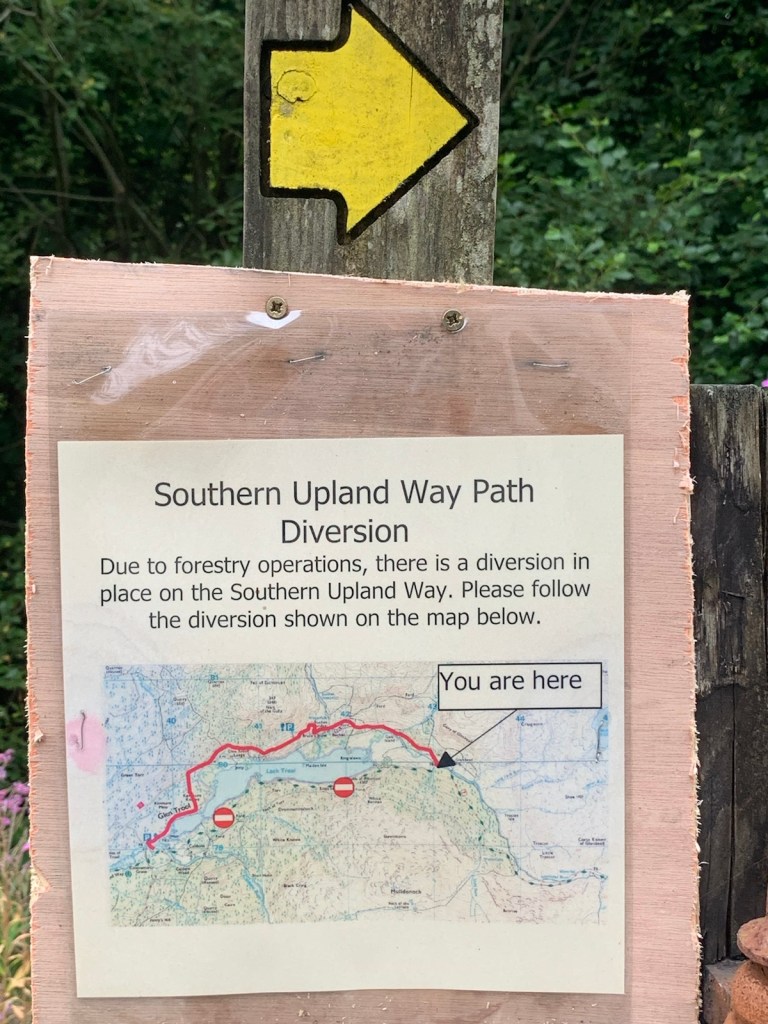 Next came a couple of lochs and at last, I knew I was in Scotland. I walked along Loch Trool and almost reached the far end when I saw a sign warning that the path was closed due to forestry operations. There was a risk of death among other things. Fortunately the operations consisted of a friendly team, clearing the bracken from the SUW and I stopped for a chat with them. They were pleased to meet a customer.