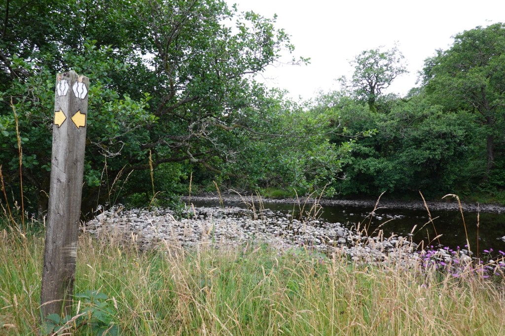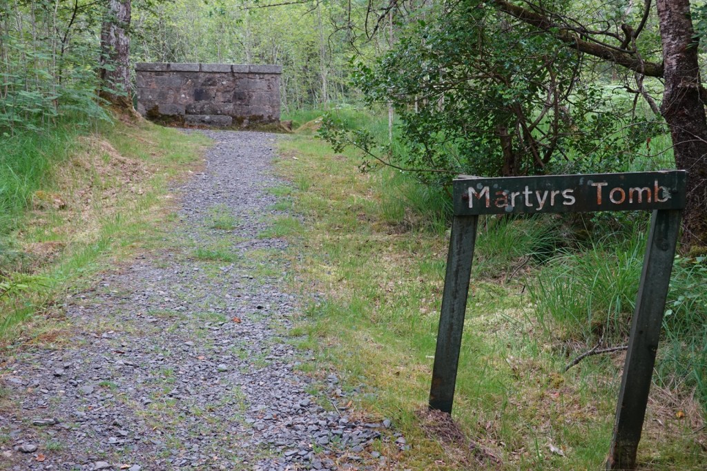 It was a strange day. The first part was through mixed woodland, with a luxurious grass path and a river. It was a delight. I stopped for my flask of coffee and fruit cake, deep in Caldons Wood, by the tomb of six Covenanters, shot while praying in 1685.