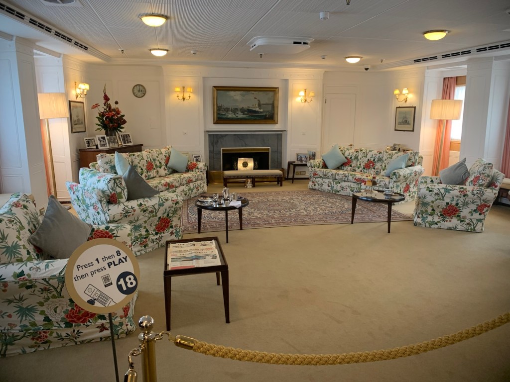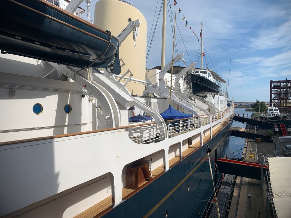 So there I was at Ocean Terminal, Leith at 10am for my tour of the bridge, the State Apartments and banquet hall, the Royal sun deck and the crew quarters; even the garage for the Rolls Royce. Lots of photos and memorabilia everywhere. Princess Di looking rather dated but a youthful Princess Anne surprisingly catching the eye.