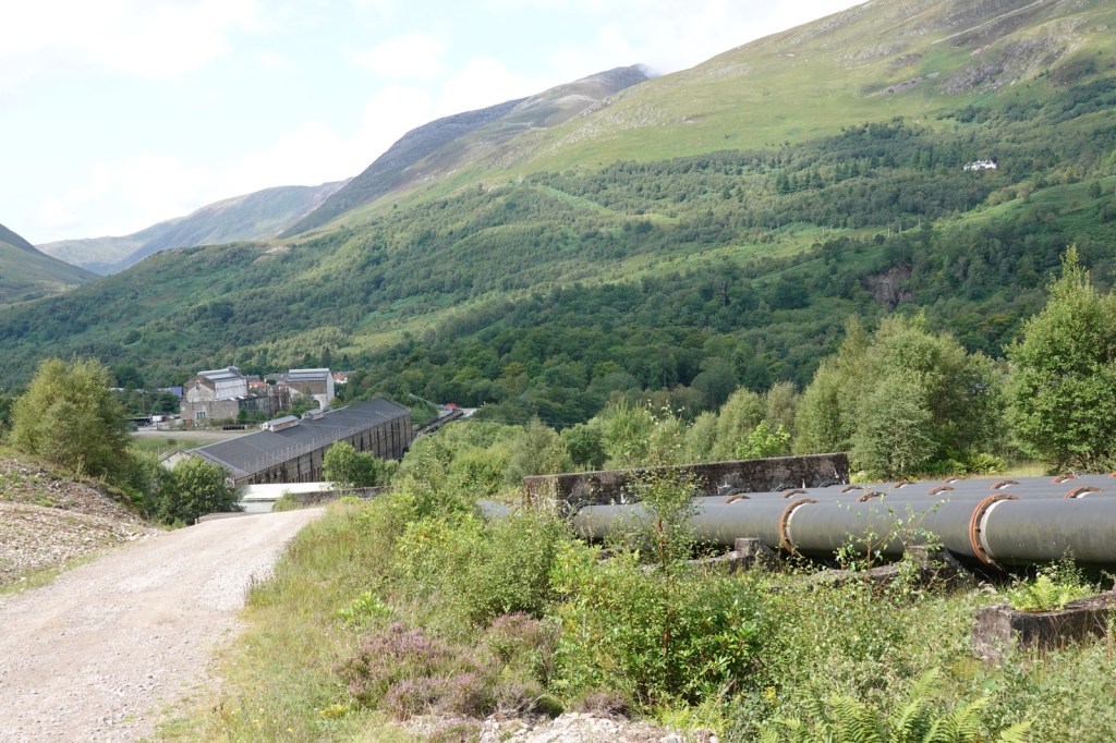 I name the next section, “The Devil’s Descent”. First we crossed the Sron a’Choire Odhair-bhig and then the Allt a’Choire Odhair-mhoir which led us to the massive feeder pipes for a hydro electric power station. They plunged down into the glen and we followed in a kamikaze dive down a one in three gravelly roadway, slipping and sliding down 697m to Kinlochleven. Lizzie’s blisters erupted and I felt every painful step, memories of our hapless struggle to Wissant in 2018 flooding back.