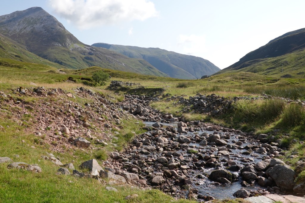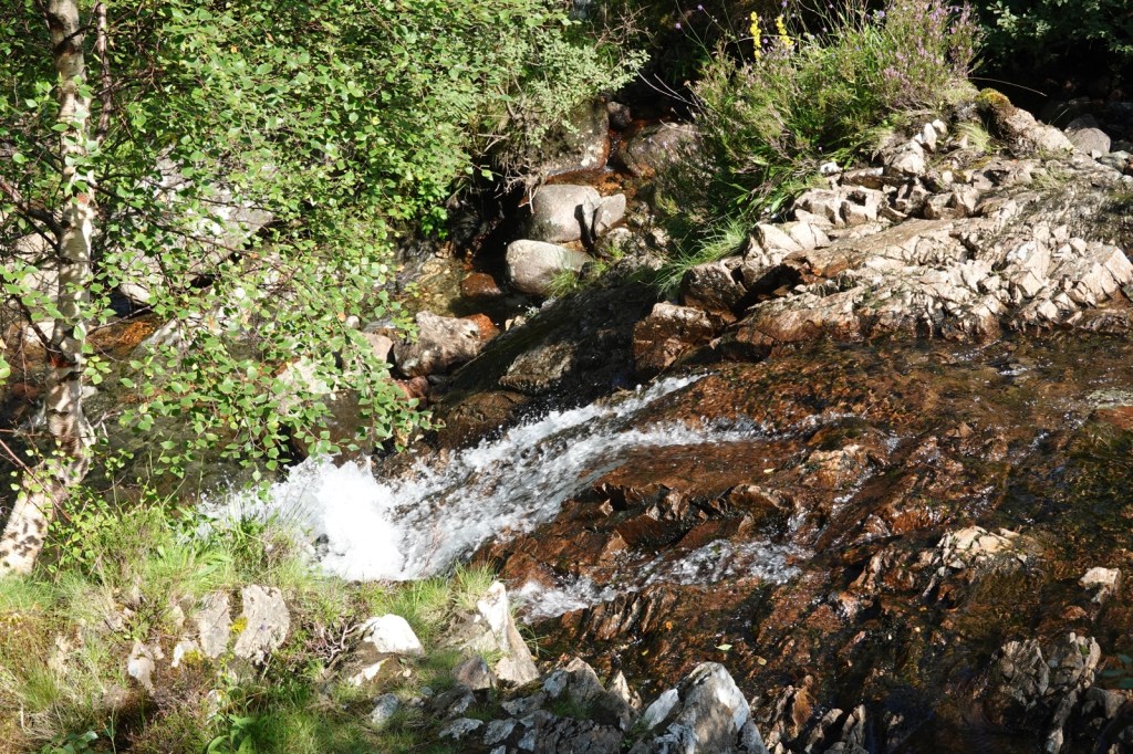 As we walked along the Allt Nathrach we passed a few derelict farm houses and tried to imagine the isolation their occupants must have experienced. Lizzie told me about her new vegetable patch and how the broccoli was eaten by caterpillars but we all know what they metamorphose into. We received a message from Colin & Rachel saying they caught their train home.