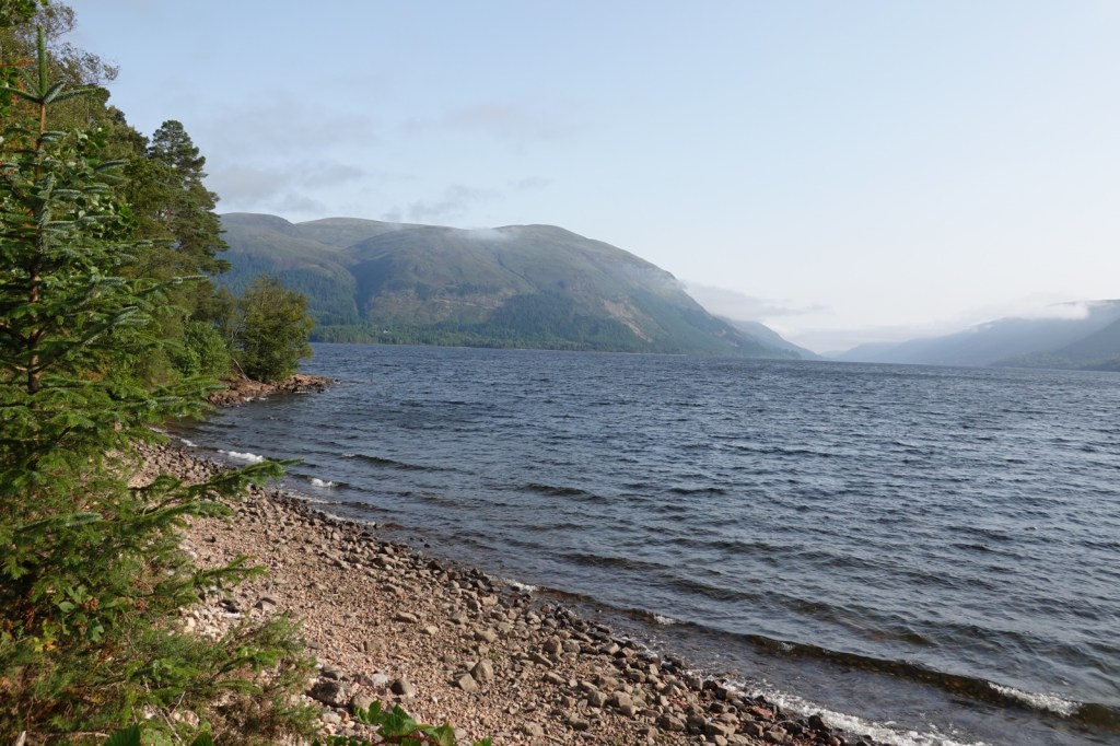 Colin made my scrambled eggs and then drove me the 6Km back to the trail at Gairlochy (which I walked yesterday). I resumed walking and what a fine day I had. Alongside me was Loch Lochy and it looked a picture in the morning sunshine. This is classic Scottish scenery: a Glen, a Loch, some heather and conifers. Even the occasional Sequoia. I was alone. The water glistened in the sun and the little waves splashed on the shore.