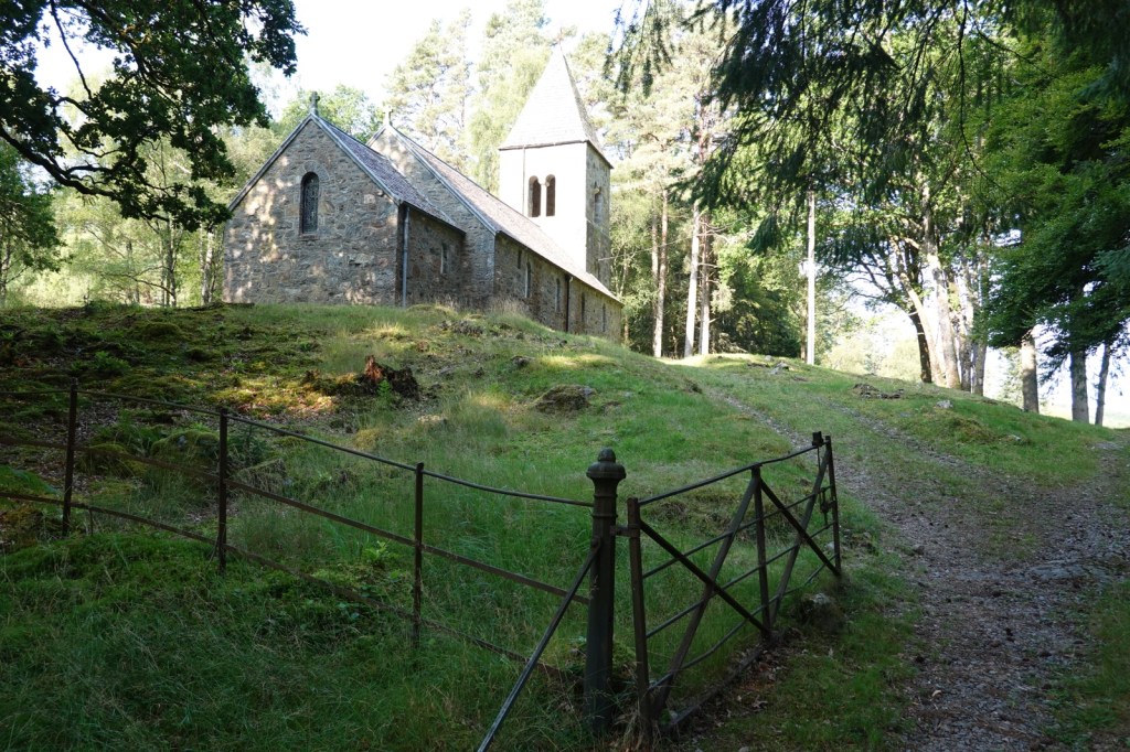 I walked along the shoreline pointing my little Sony camera at everything. The woodland was a delight, a mixture of copper beeches, sequoia (giant redwoods), oaks, rhododendron etc. I crossed the Allt Coire Choille-rais and then diverted into the woods to see St Ciaran’s church in Achnacarry. It was built in 1909 to serve the local community and is owned by a charity. Unlike almost all churches nowadays, the door is never locked so I went in, switched the lights on and soaked up the atmosphere. This part of Scotland is the homeland of the Cameron Clan and it wasn’t long before WW1 took its toll on the Camerons and others, as seen on the various memorials. Sadly the monthly service stopped in 2019 when attendance fell to zero and the charity’s funds are almost depleted. One wonders if there isn’t a modern day Cameron who might spare a few pounds to ensure its survival.