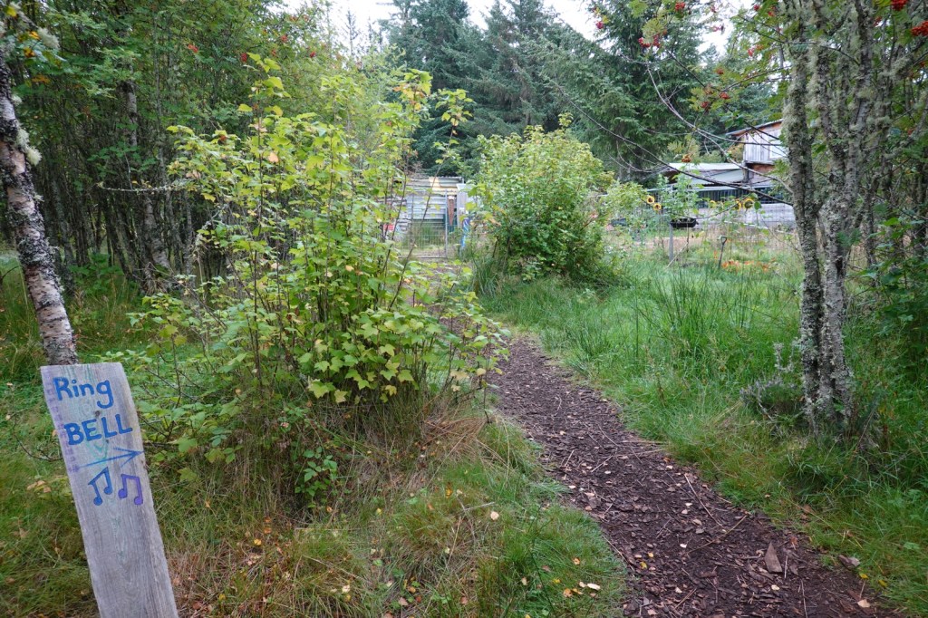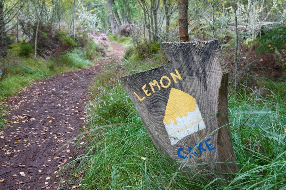I met Rose & Matthew again (Rose will walk with me up the coast for a few days) and we walked for a bit until they stopped for breakfast. I continued into the woods and once again a spell was cast over me. Perhaps it was yesterday’s Troll Bridge. The woods were alive with all sorts of strange plants and fungi and I started to see little signs tempting me on. “Coffee”, “Hot Chocolate”, “Lemon Cake”, “Vegan soup” and more. Was an evil witch trying to lead me astray, deep in these woods?