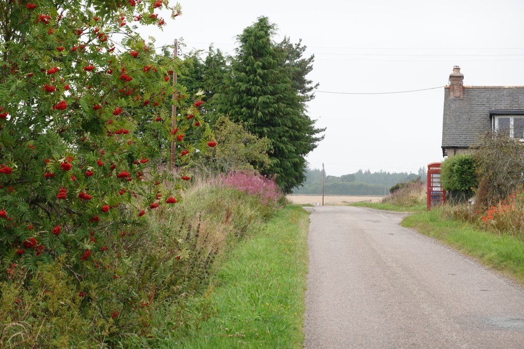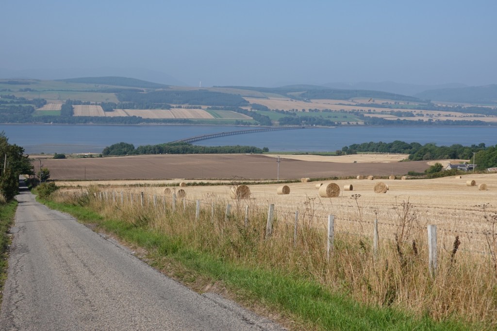 The little guidebook describes a torturous figure of eight route through the woods but I walked along a charming country lane instead. The farmer in Culbokie was busy baling straw while the sun was shining. He drove an enormous tractor which towed the bale making machine. He’d stop occasionally and release a giant bale already bound up and ready for use. One man sitting in the cab processing all the fields, straw, wheat, barley, hay. I can’t imagine what Thomas Hardy would make of it. He couldn’t write Tess of the d’Urbervilles today. Where would he find all the girls with their sickles and scythes?