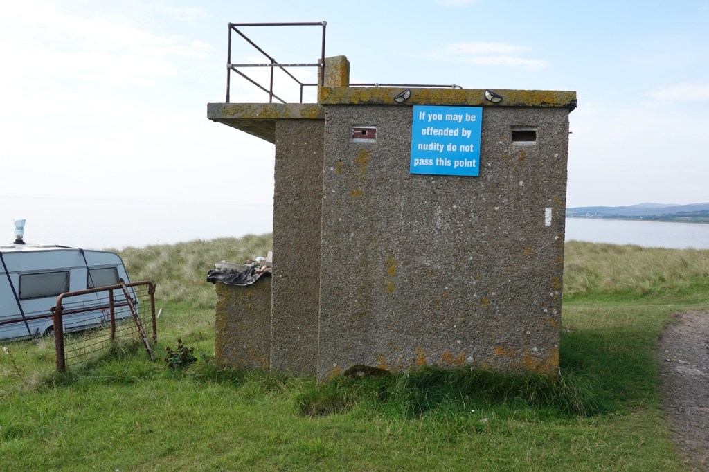 The main A9 came close to the coast to discharge a large number of caravans at Scotland’s only official naturist beach. We didn’t venture beyond the warning sign.
