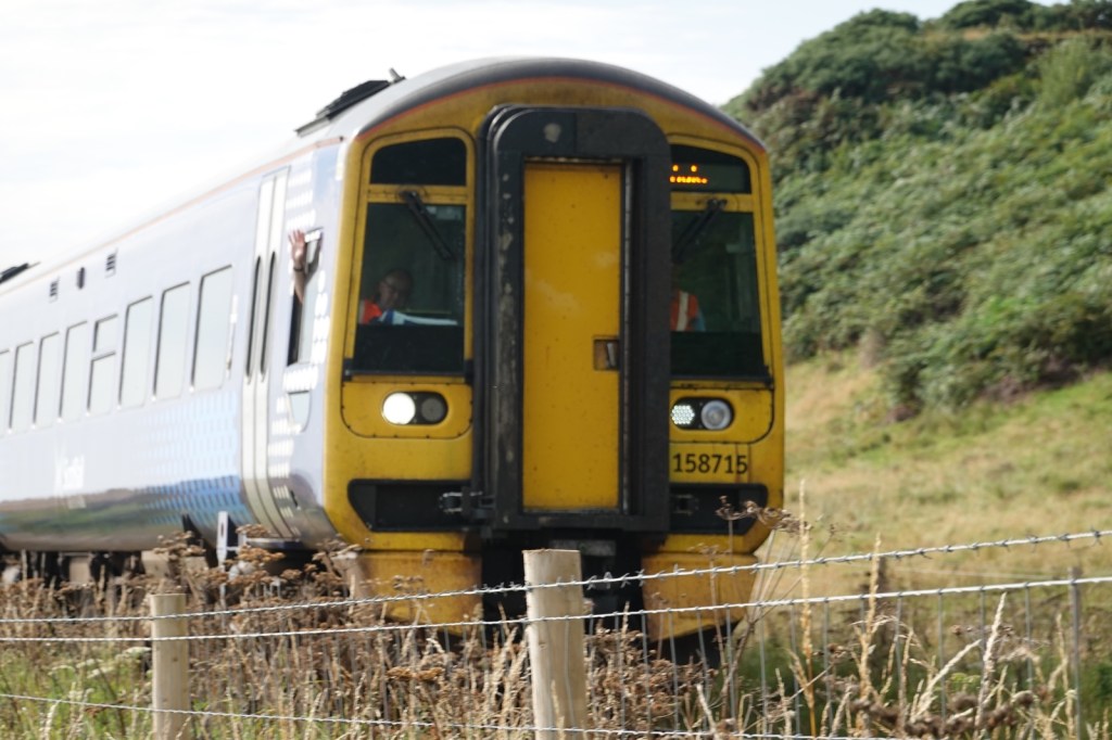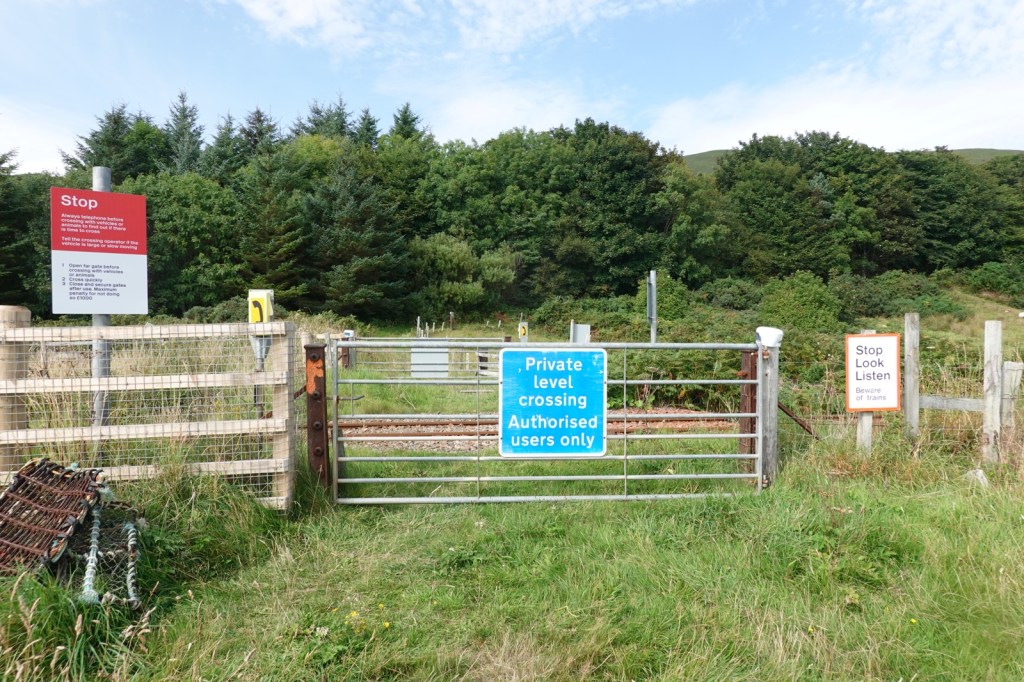 The two carriage railway from Inverness to Wick runs along the coast and we had to use a private level crossing to cross the track. We were just about to open the gate when the train sped around the bend towards us. The driver whistled and waved as he passed.