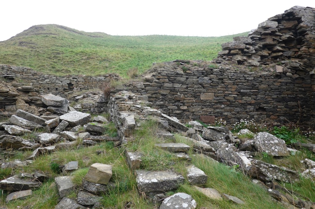 At Latheronwheel, I stopped for a coffee break, deploying my new Thermos for the first time. And then there was an endless section towards Lybster, clambering over barbed wire fences, styles and gates. Deep inlets called geos require large detours and descents to ford the burns.