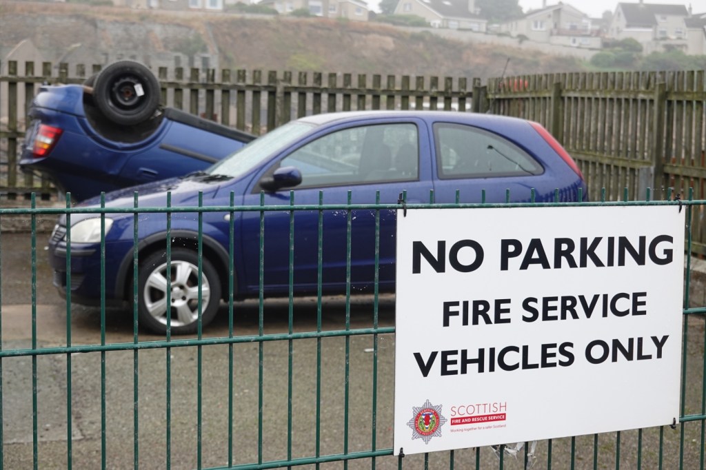 • Firemen training vehicle. Presumably the other one will be flipped over too.