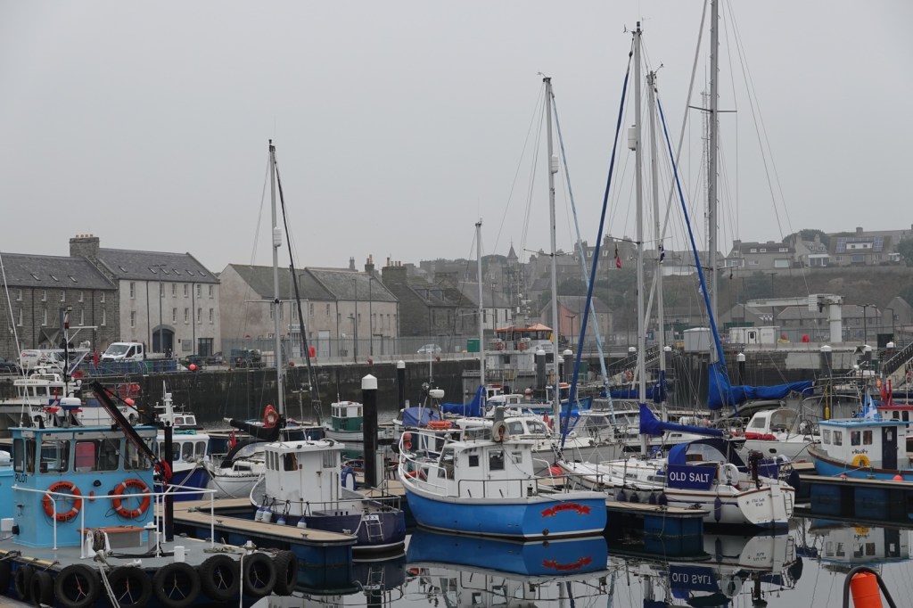I looked out of the window this morning and saw … nothing. Visibility might have been 100m if the faint black blobs that are cattle in the field count as visibility. Fog. I waited until 10am while conditions further deteriorated and then took the bus. My farm house B&B was as close to the cliff top as I was prepared to go today. It was just as bad in Whaligoe so I stayed on the bus to Wick.